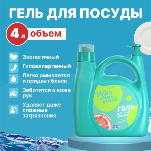 Средство гель для мытья посуды Грейпфрут Was / ВАС 4 л