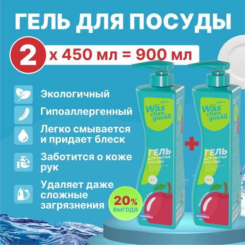 Средство гель для мытья посуды Красное Яблоко Was / ВАС 1 + 1 шт 900мл