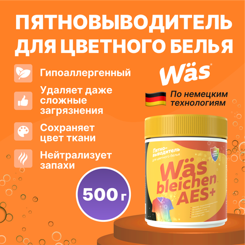 Кислородный отбеливатель пятновыводитель для цветного белья Was / ВАС 500 гр