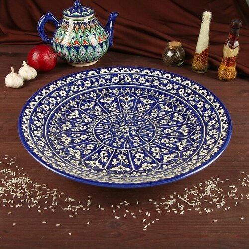 Ляган Риштанская Керамика "Цветы", 37 см, синий