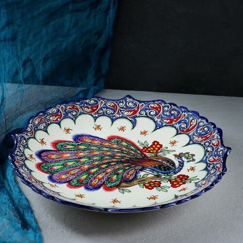 Ляган Риштанская Керамика "Жар птица", 42 см, рифлённый