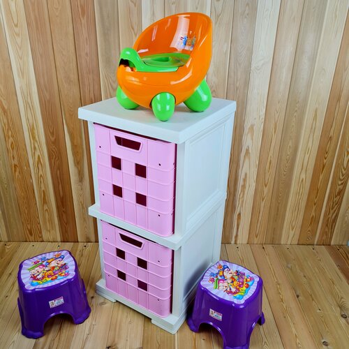 Детская пластиковая тумба-этажерка "Весёлые ребята" с горшком "Тёма". Цвет: Бежево-салатовый.