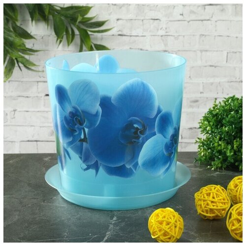 Горшок для цветов Деко d-160мм 2,4л орхидея голубая, с подставкой 2шт