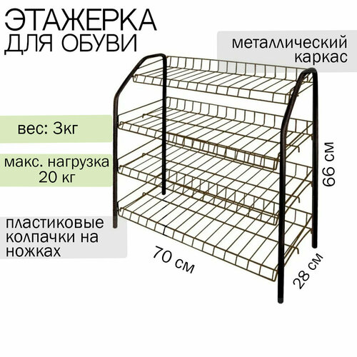 Этажерка для обуви разобр 4 полки 660х280х700 ЭТ1