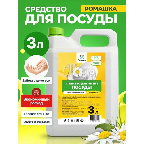 Средство для мытья посуды Опрель, с запахом ромашки + витамин Е, 3 л
