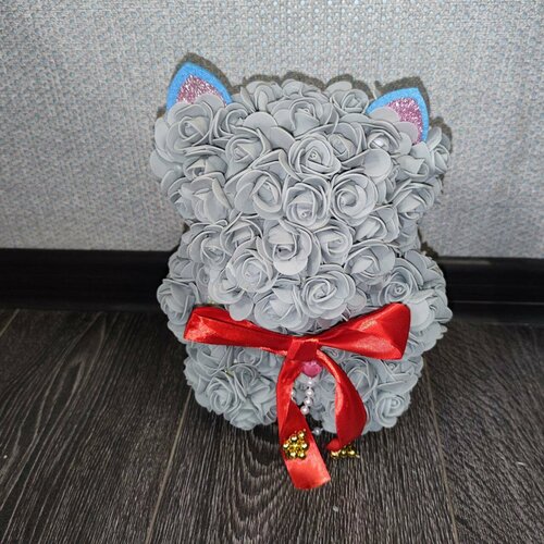 Мишка из 3d роз (16 см) Серый мишка с синими ушками