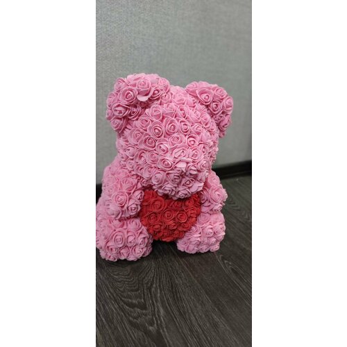 Мишка из 3d роз 30см с сердцем. Розы из фоамирана