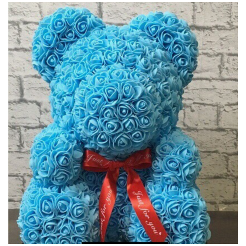 "Снежок" - Мишка из искуственных 3D роз 35см, 1000 цветков, голубой , 1шт