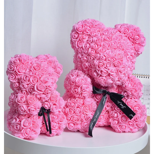 Мишка из 3d роз (30 см), мишка из фоамирана, "розовый"