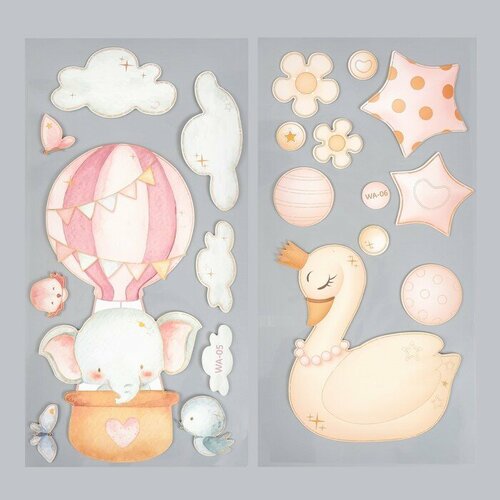 Наклейка интерьерная "Слонёнок/Царевна-лебедь" микс 31х60 см