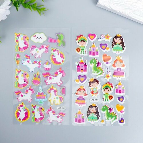 Наклейка пластик объёмные "В гостях у сказки" микс 10х20 см