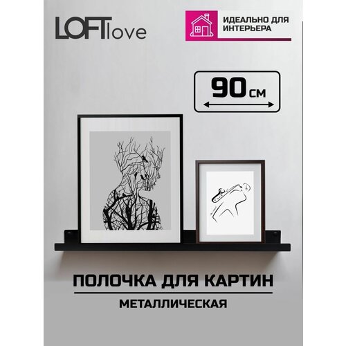 Полка настенная для картин, фотографий, икон 90см металл чёрная