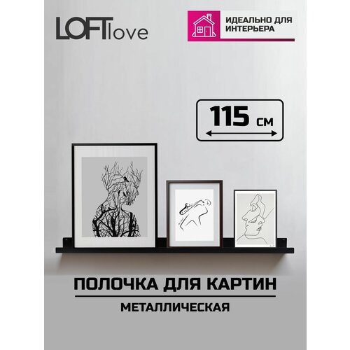 Полка настенная для картин, фотографий, икон, 115см металл чёрная