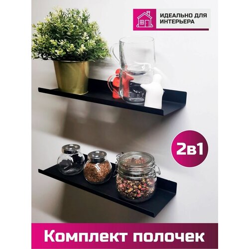 Полка настенная универсальная металл, комплект 2шт чёрный