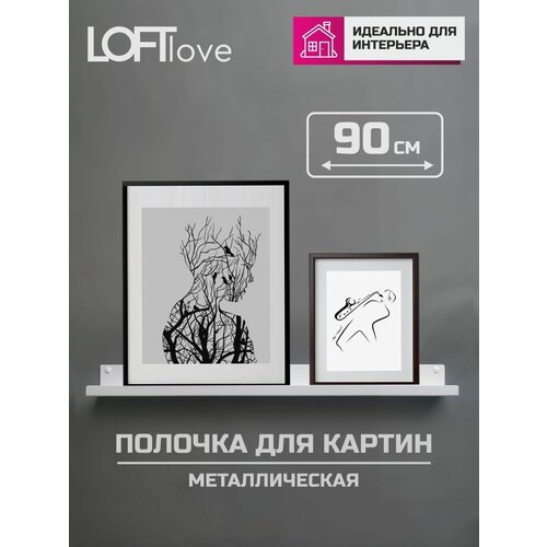 Полка настенная для картин, фотографий, икон 90см металл белая
