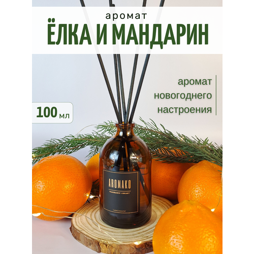 Ароматический диффузор с палочками Ёлка и мандарин 100 мл AROMAKO, ароматизатор для дома и офиса, парфюм для дома