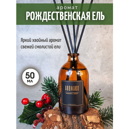Ароматический диффузор с палочками Рождественская Ель 50 мл AROMAKO, ароматизатор для дома и офиса, парфюм для дома