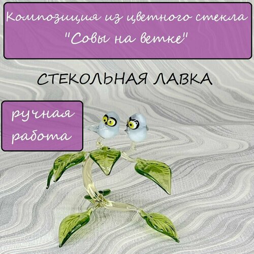 Композиция "Совы на ветке" птицы из стекла