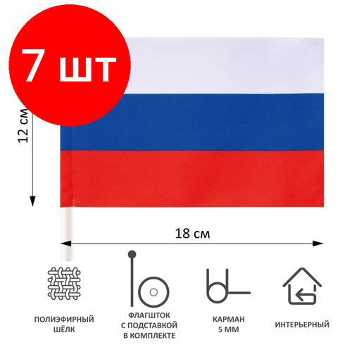 Комплект 7 штук, Флаг РФ 12*18см с подставкой 1-ой белый пластик 30