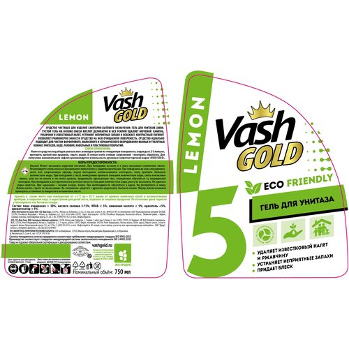 Гель для чистки унитазов Vash Gold Lemon 750 мл