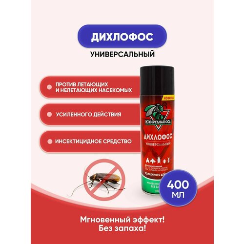 Средство от насекомых Изумрудная оса дихлофос универсальный усиленного действия для уничтожения летающих и ползающих насекомых, 150 мл