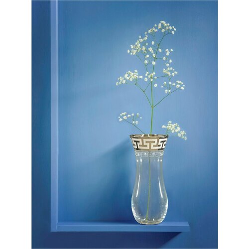 Ваза для цветов стеклянная с алмазной гравировкой Promsiz Греческий узор, 26 см, 1 шт.
