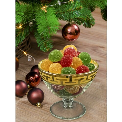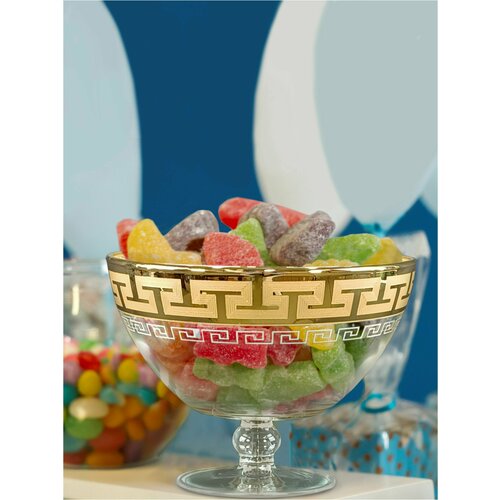 Ваза стеклянная на ножке для фруктов / конфет с алмазной гравировкой PROMSIZ Греческий узор, d 130 мм, 1 шт.