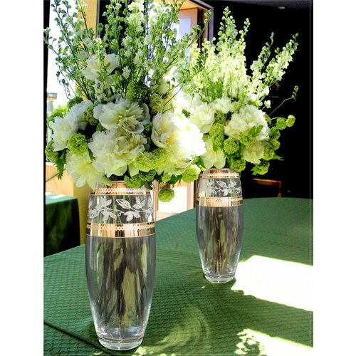 Ваза для цветов стеклянная с алмазной гравировкой PROMSIZ Версаль, 26 см, 1 шт.