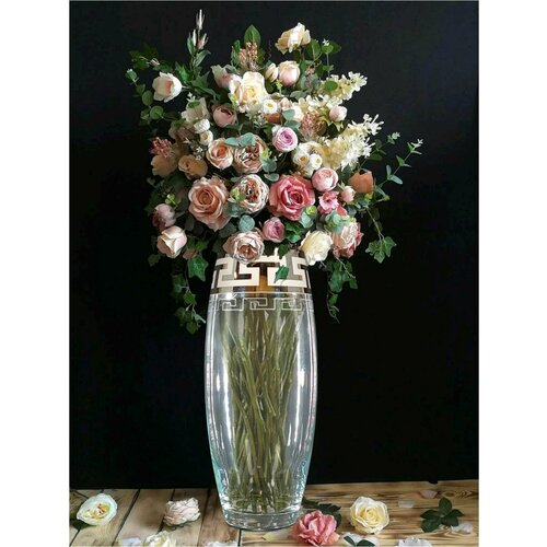 Ваза для цветов стеклянная с алмазной гравировкой Promsiz Греческий / декор и интерьер / ваза для цветов стекло / 25,5 см, 1 шт.