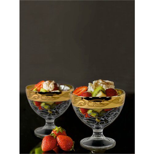 Ваза / Креманка стеклянная на ножке для конфет/мороженого/фруктов с алмазной гравировкой PROMSIZ барокко, d 115 мм, 2 шт.