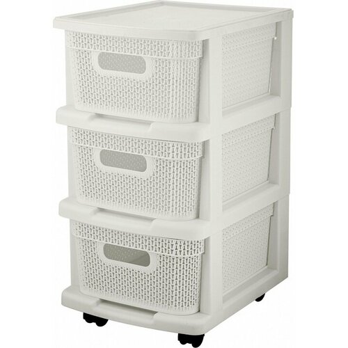Комод пластиковый Keeplex Ajur компакт с корзинам (белое облако, 3-х секционный, колеса), 37х30х56,3