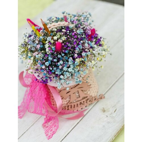 Букет Гипсофила в плетенном кашпо