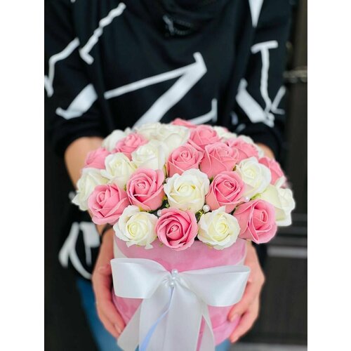 Цветы из мыла / Букет в коробке с шаром