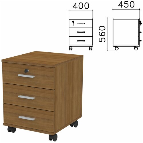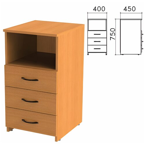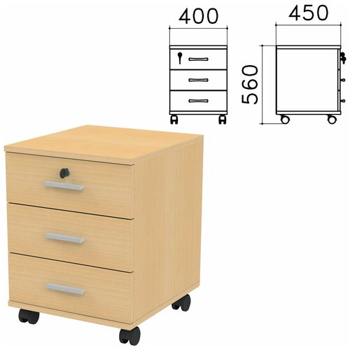 Тумба подкатная Канц, 400х450х560 мм, 3 ящика, замок, цвет бук невский, ТК29.10