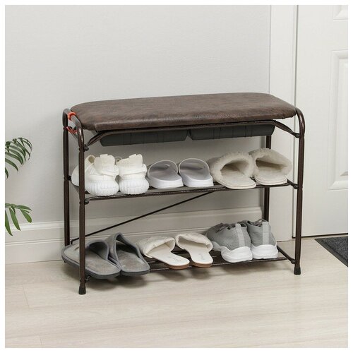 Подставка для обуви с сиденьем, 3 яруса, 60 см, антик