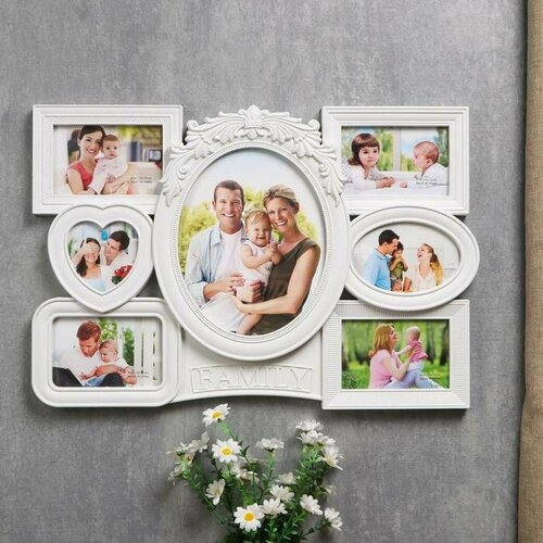 Фоторамка пластик на 7 фото "Воспоминания" белая 10х10 см 10х15 см 20х25 см (42х56 см)