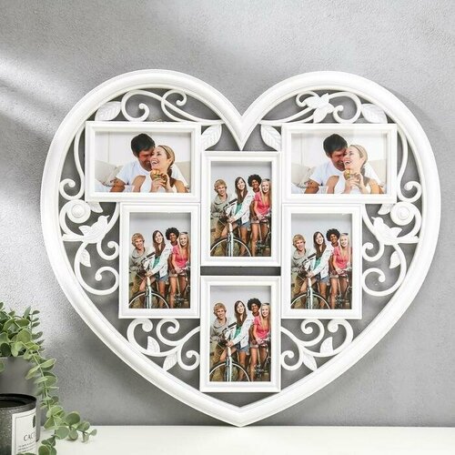Фоторамка пластик на 6 фото 10х15 см "Сердце ажурное" белая 56х51 см 1 шт.