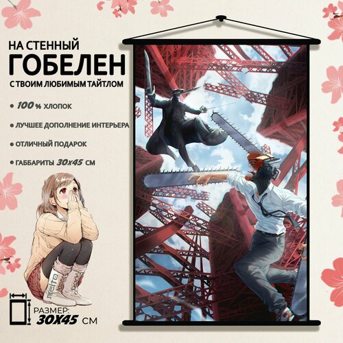 Гобелен аниме Человек бензопила Дэнджи и Человек катана 45x30 см
