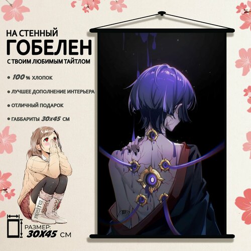 Гобелен постер на стену в стиле игры с персонажами аниме Геншин Импакт Странник 45x30 см