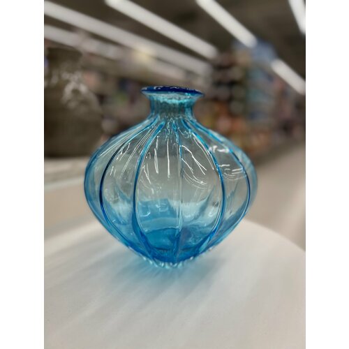 Ваза стеклянная для цветов, интерьерная, бирюза