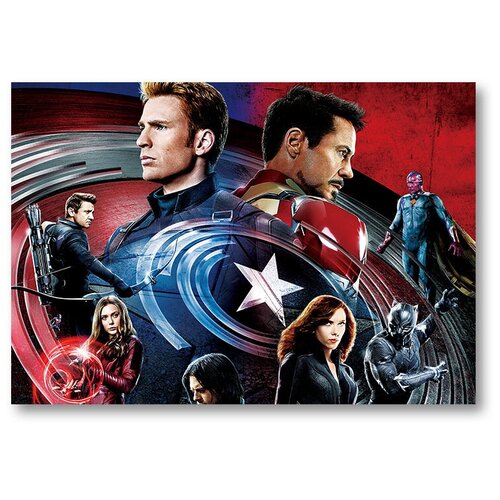 Постер на стену Марвел Супергерои Мстители, рисунок плакат интерьерный, 51х35 см