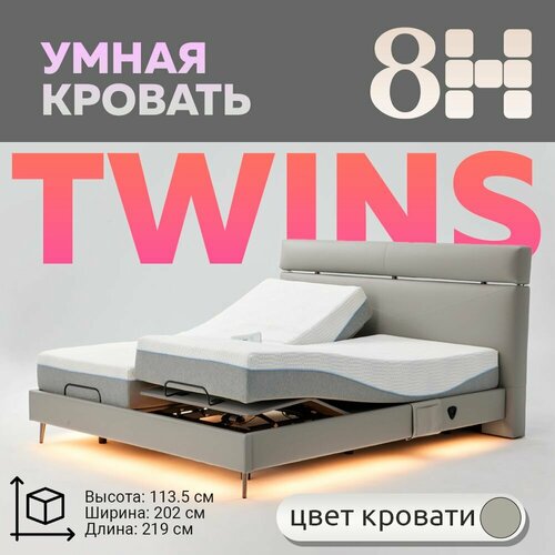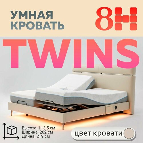 Умная двуспальная кровать 8H DT8 TWINS (219см х 202см х 113.5см ДхШхВ), бежевая + матрасы RM