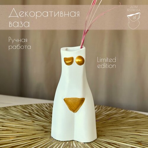 Ваза для сухоцветов, для декора из гипса белая Дом Besstressa, 13 см