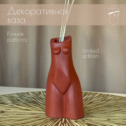 Ваза для цветов и сухоцветов, для декора из гипса с колбой Дом Besstressa, 11 см