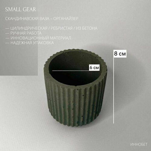 Скандинавская ваза, органайзер цилиндрическая, ребристая SMALL GEAR из бетона