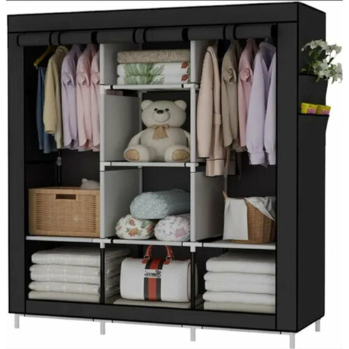 "Гардеробная система Beautiful House" 6 полок, 175х108х36 см, металл/пластик, черная Гардероб Шкаф вешалка Удобная гардеробная система хранения
