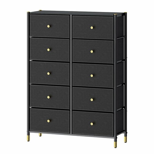 Комод для хранения вещей с ящиками 5F-5D-BLACK/GOLD- комод-пенал плюс