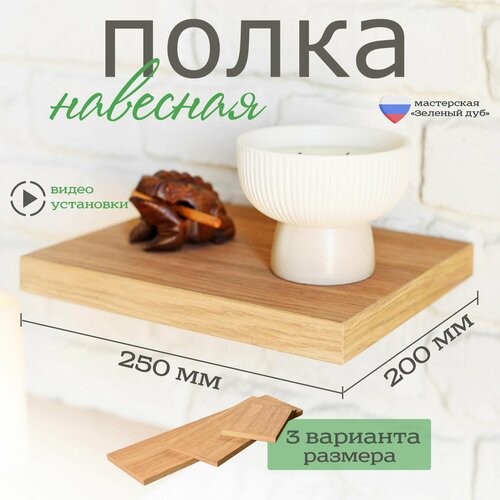 Полка настенная 25x20 см навесная, прямая, со скрытым креплением / Семейная мастерская "Зеленый дуб"