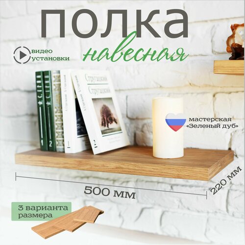 Полка настенная 50x22 см навесная, прямая, со скрытым креплением / Семейная мастерская "Зеленый дуб"