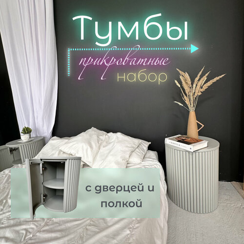 Набор тумб прикроватных Bellezza круглых с полками - 2 шт. / Семейная мастерская "Зеленый дуб"